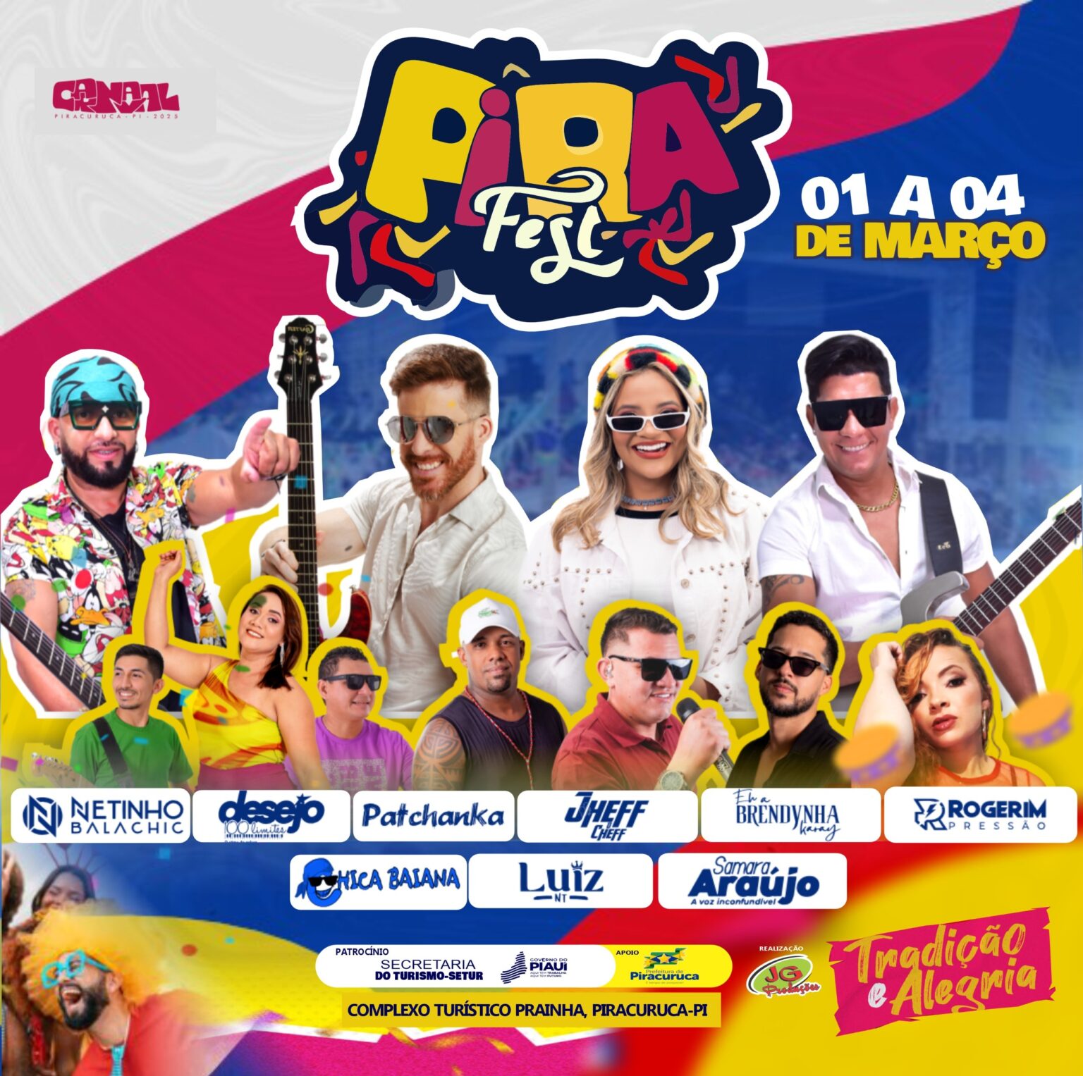 “A estrutura do evento contará com palco, iluminação e som de alta qualidade, além de um esquema especial de segurança para garantir a tranquilidade dos foliões. É importante termos a parceria da Setur, pois, além dos shows, o PiraFest pretende incentivar os turistas a conhecerem os atrativos da cidade, promovendo Piracuruca como um destino completo para lazer e cultura”, pontua o organizador Andrade Júnior.